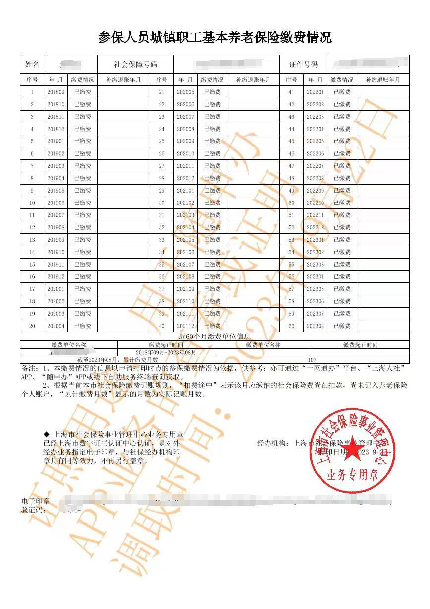非上海户籍在沪工作的往届生 | 2025年连续6个月的上海社保缴费成功记录图像【随申办APP中搜索“参保人员城镇职工基本养老保险缴费情况”后查询下载相应图片,或至社保网点打印《参保人员城镇职工基本养老保险缴费情况》】;2025届毕业生需提供本人最近3个月的上海市社保缴费成功记录(7-9月或8-10月)。缴费状态:已缴费,10月份视同缴费亦可,补缴无效。 |