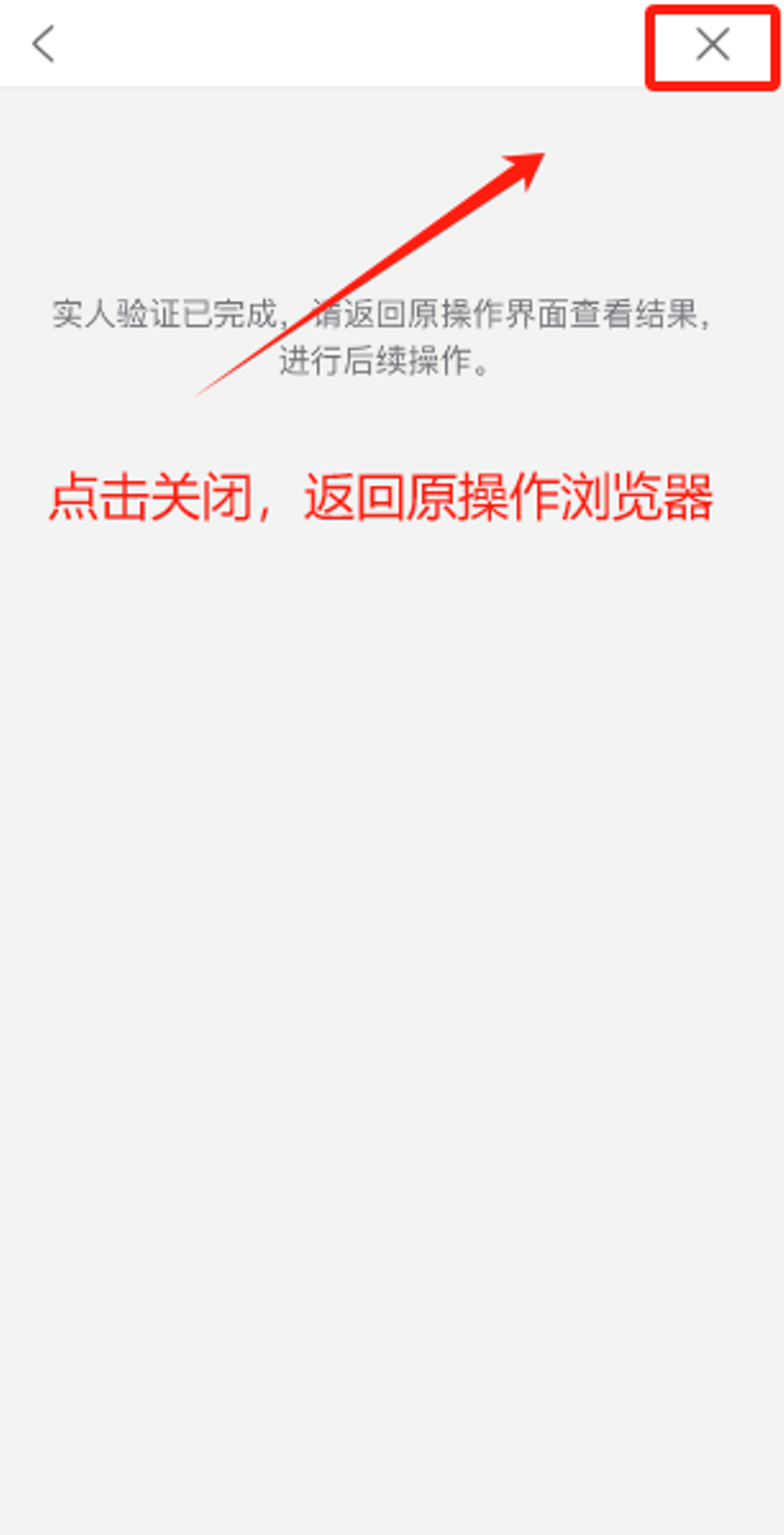 考生从移动设备chrome浏览器登录系统,选择“学信网App”方式后,在移动设备浏览器页面点击【开始】,按照提示进行实人验证操作,完成后点击页面右上角“关闭”键回到原操作的浏览器,页面提示实人认证成功即完成“两识别”、“四比对”。